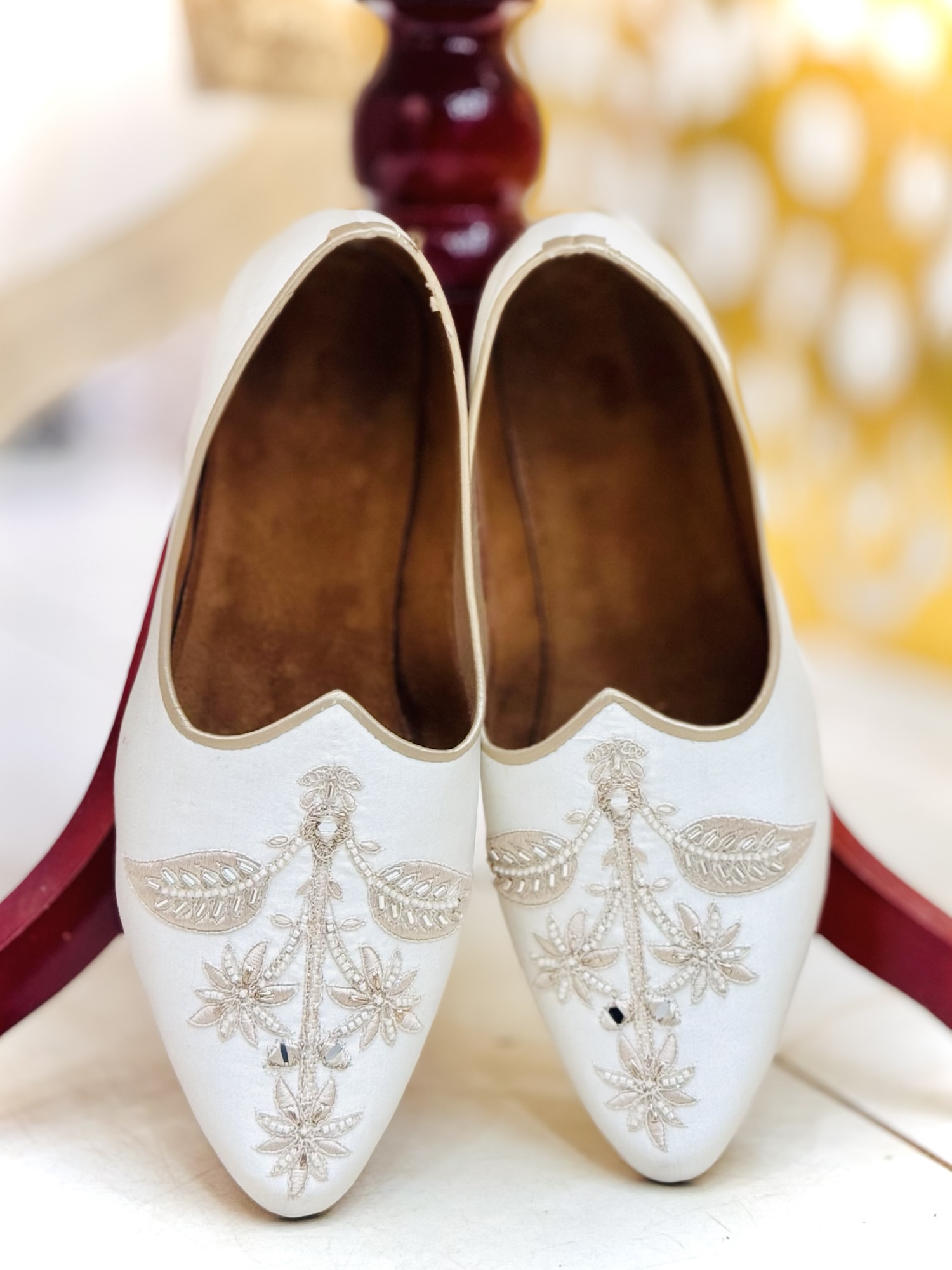 Material : embroidered sherwani , silk pajama , silk shawl , cotton silk safa , moti mala , embroidered mojdi .